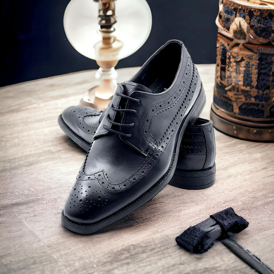 Men’s Black Leather Lace-Up Brogue Derby Shoes
